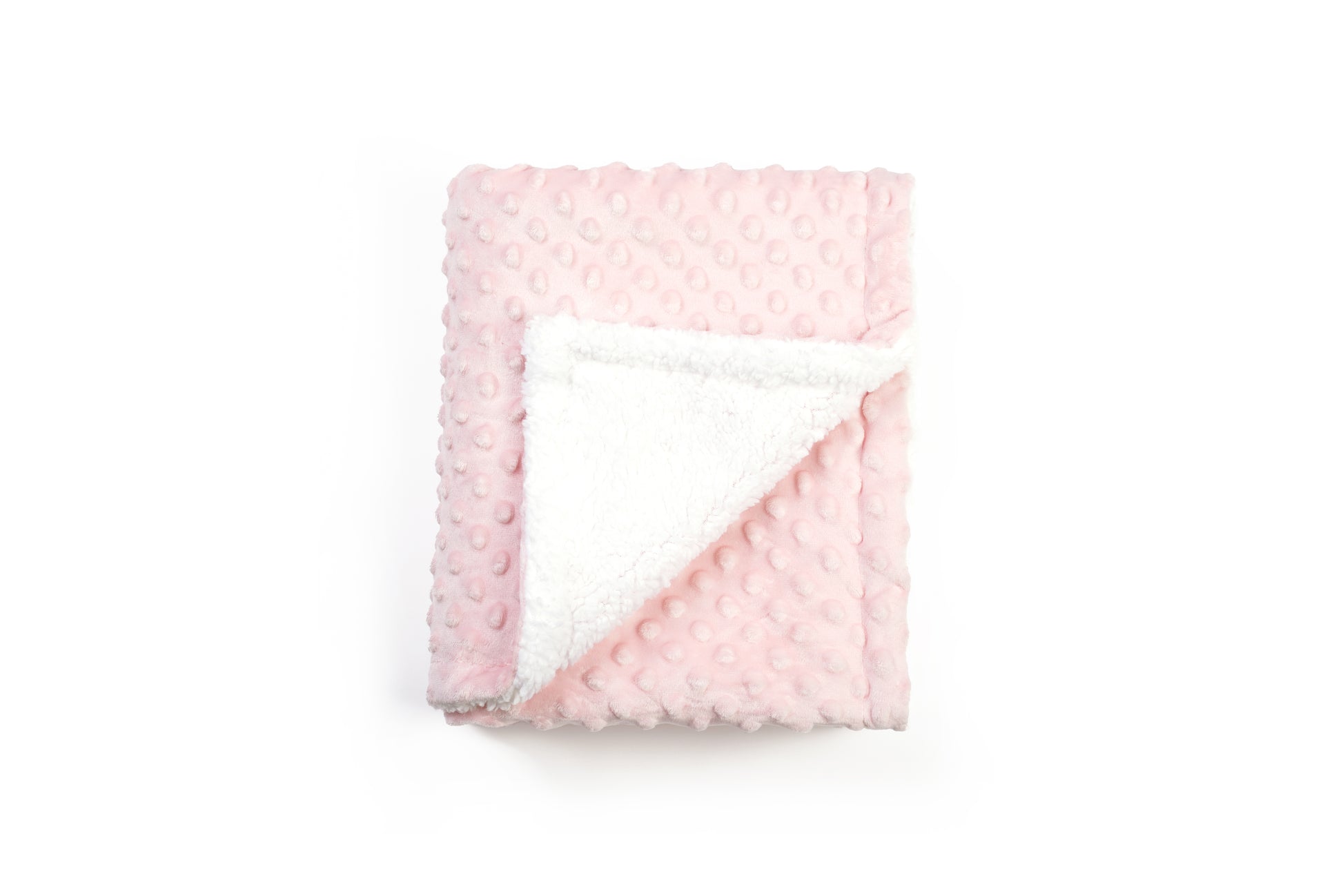 The Sleepy Bear Baby Blanket combines plush minky fabric with a 3D polka dot design, creating a tactile experience your little one will love. It also includes a cute, soft neck pillow with a napping bear.