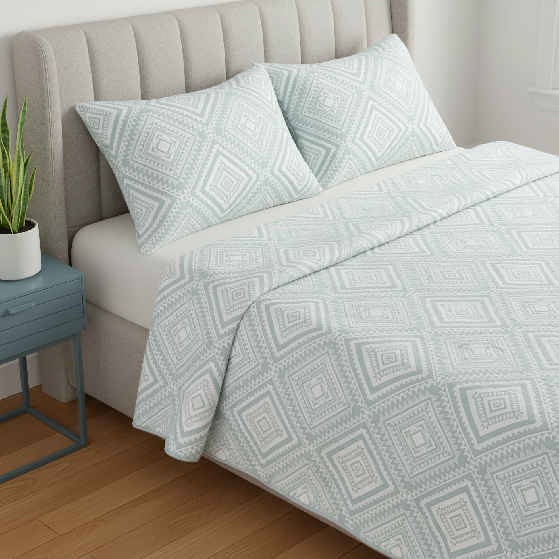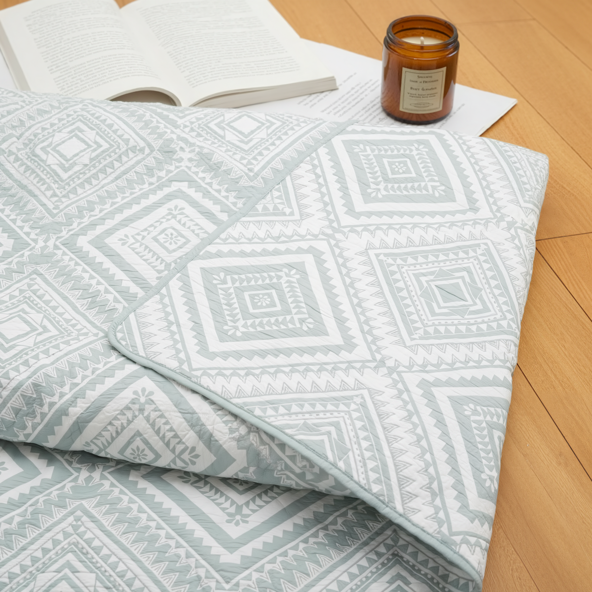 Our reversible quilted blanket set features a textured diamond pattern and is available in four colors.