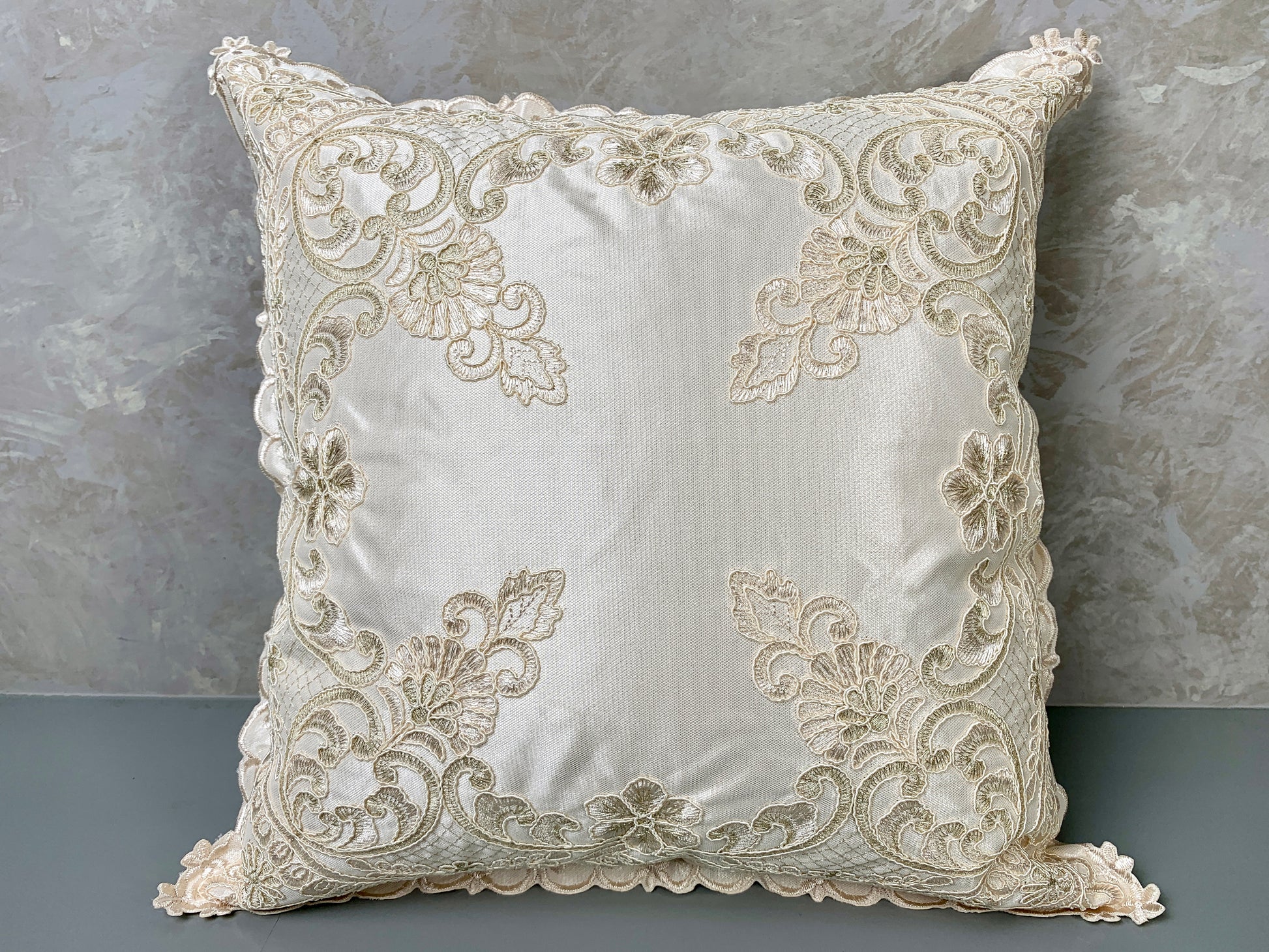 Upgrade your home décor with our beautiful and comfortable elegant embroidered pillow/cushion cover that will fit any chair, sofa, or bed. The pillow cover is made of polyester cloth with elegant lace, high quality royal embroidery, and a zipper that allows easy insertion and removal of pillow inserts. Fits 15" x 15" pillow inserts Cover only, pillow fill/insert not included!