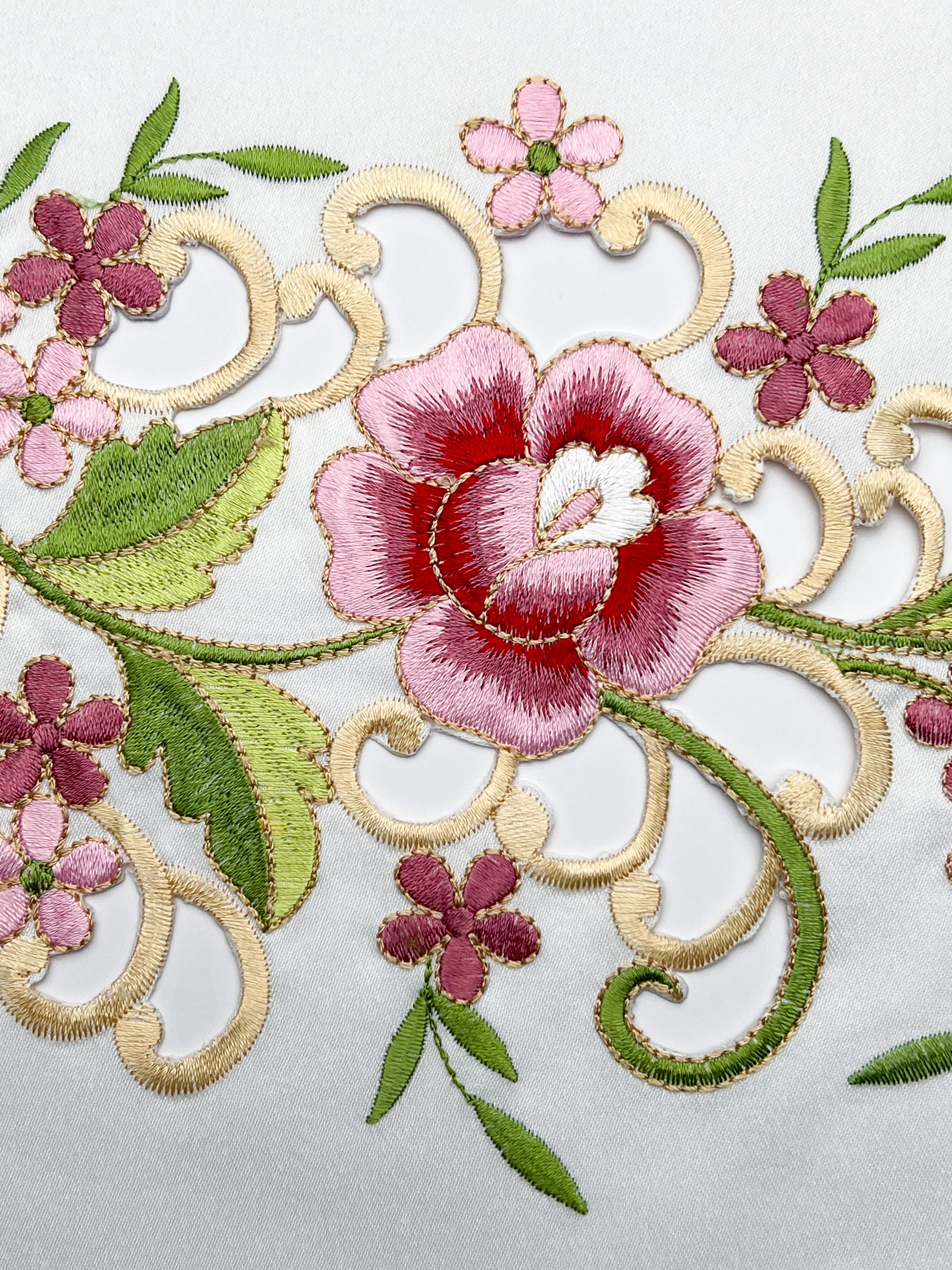 One of our classic table linen styles, the Francis collection features floral embroidery with our signature delicate lace.