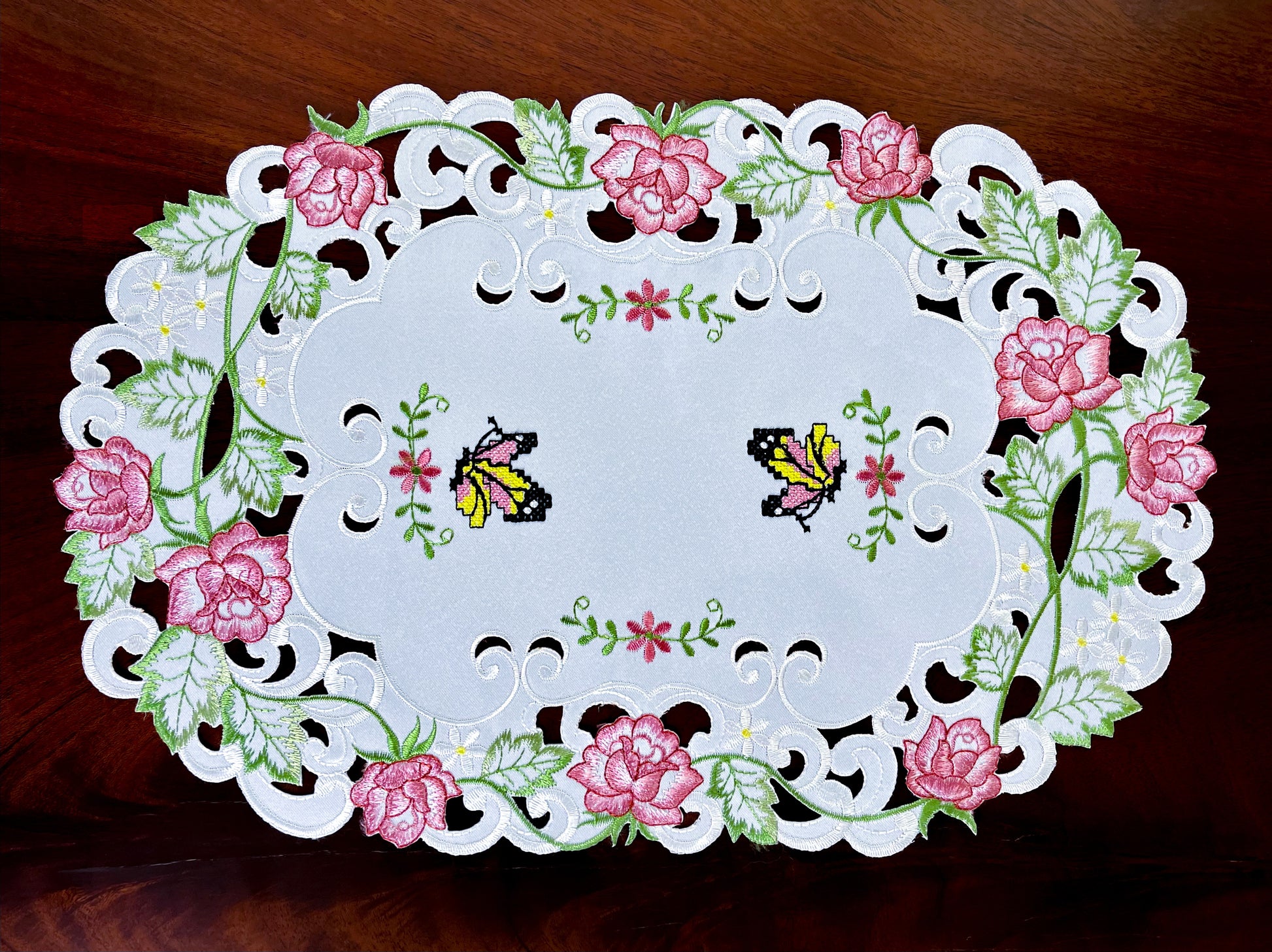 The Kaylen collection features cute butterflies on top of embroidered floral cutwork.