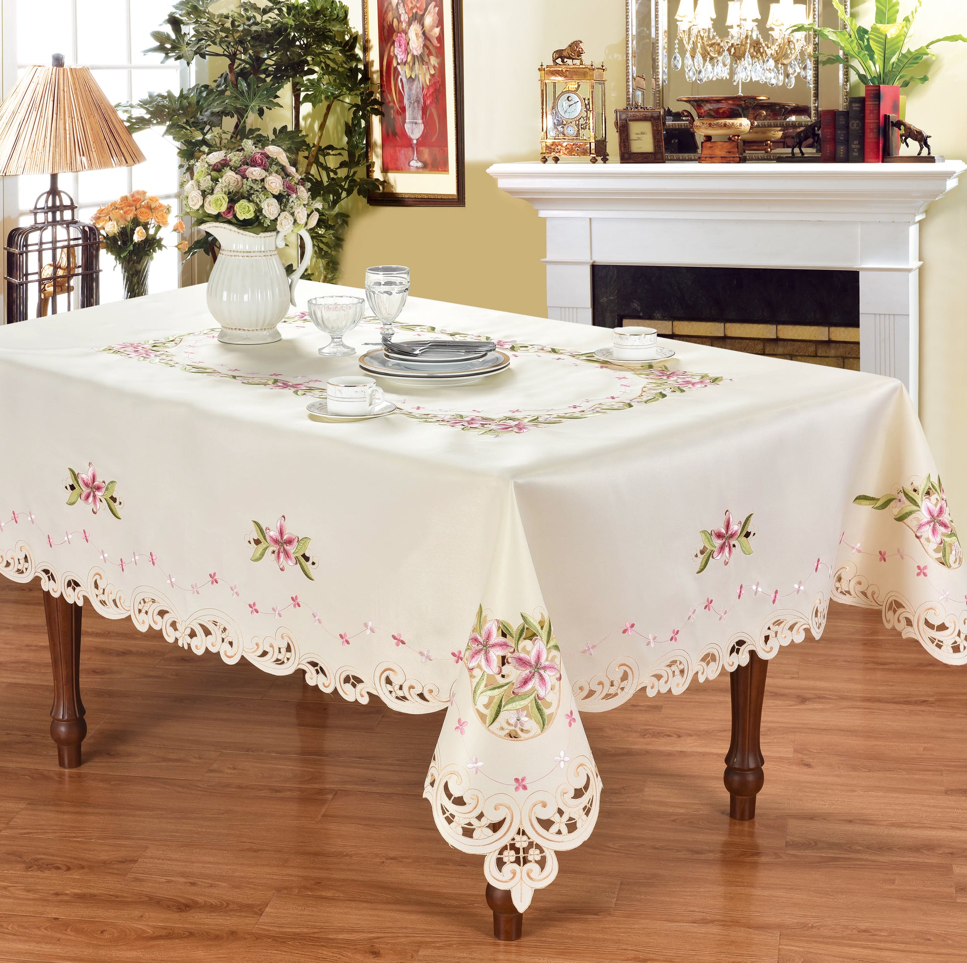 The rectangular tablecloth matches with the kitchen curtain set perfectly with the same beautiful, elegant flower embroidery design. There are four sizes to choose from.