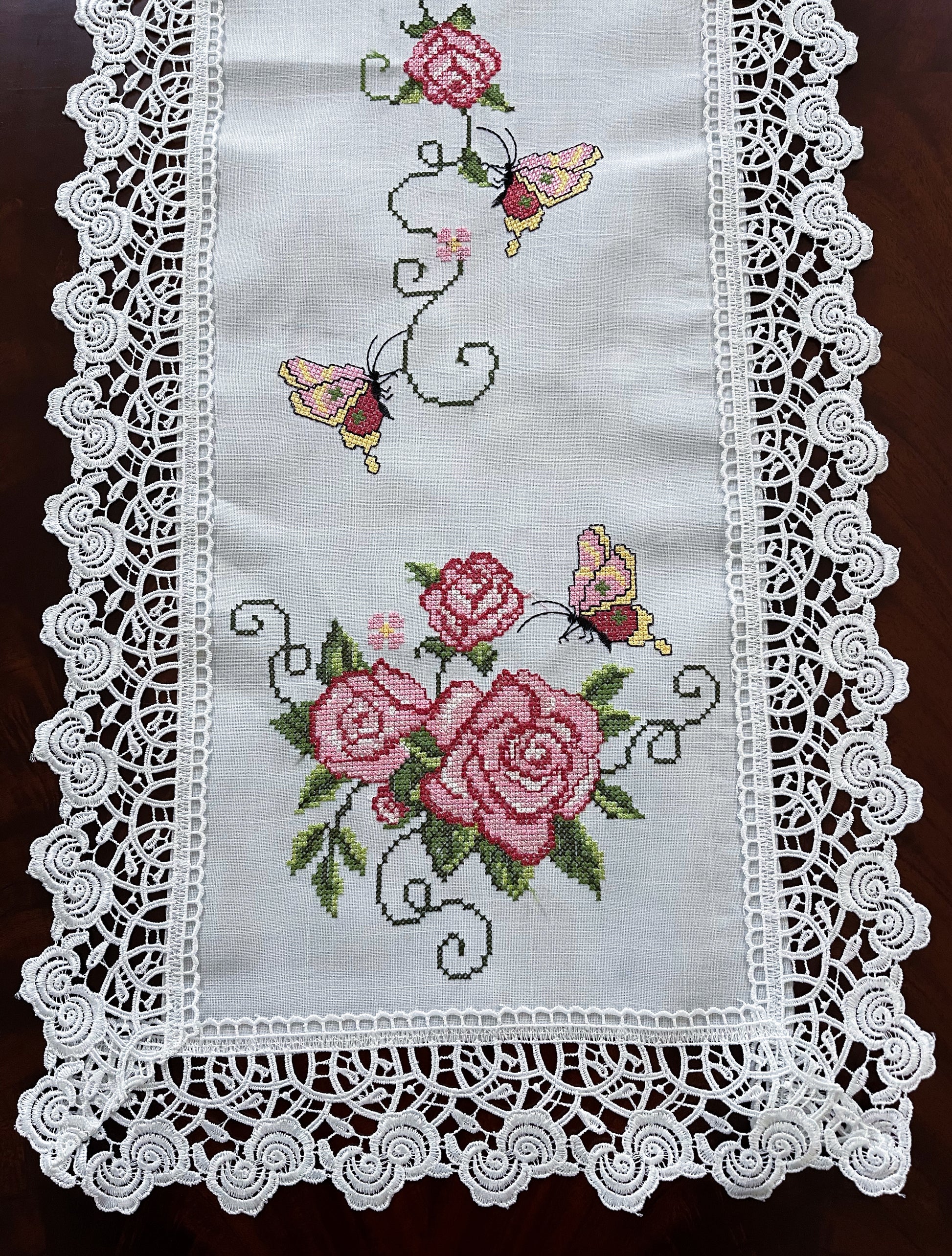 The Ruby collection showcases our classic style of cross-stitch with a butterfly and lace design.